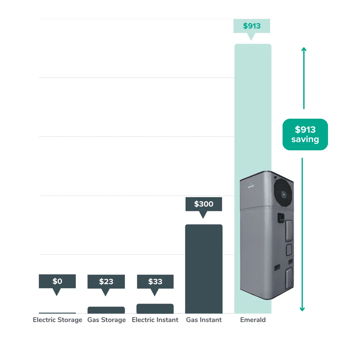 Reduce hot water bills by up to 80% and save around $913 annually compared to electric systems.